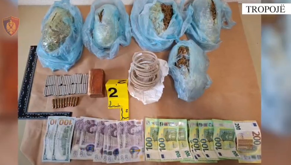 Sekuestrohen 1.2 kilogramë lëndë narkotike kanabis, 405 gram tritol, 51 kapsolla detonatore, 5 m fitil zjarrpërcjellës, municion luftarak, si dhe një sasi lekësh.
